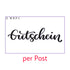 Nach deiner Bestellung werden wir den Gutschein versenden. In der Regel wird der Gutschein am selben oder am darauf folgenden Tag versendet, die Lieferzeit beträgt 1-3 Tage (Lieferzeit Mo.-Sa.). Für diesen Artikel bieten wir KOSTENLOSEN VERSAND an. Sobald der Gutschein bei dir angekommen ist kannst du ihn verschenken oder selbst behalten.